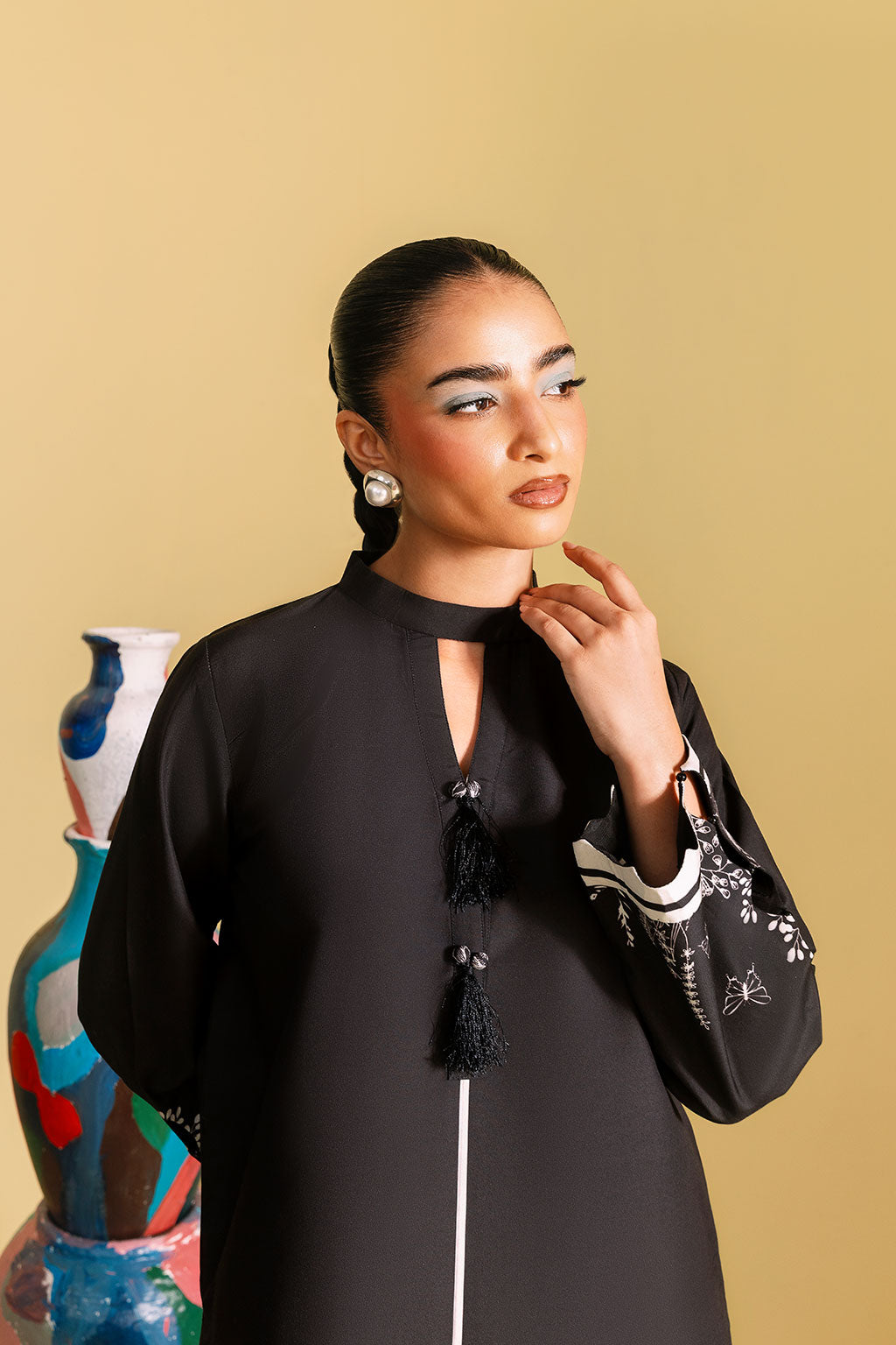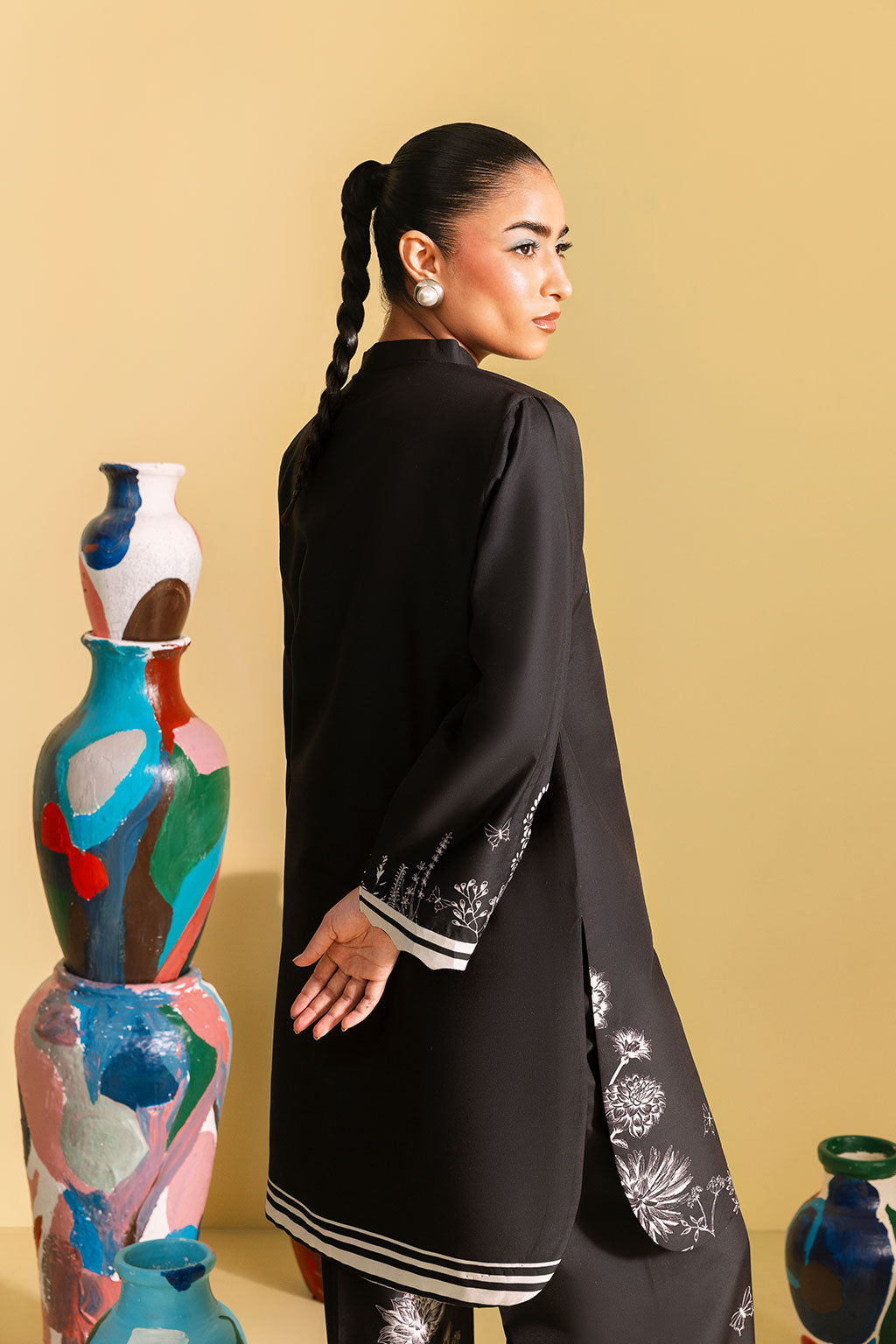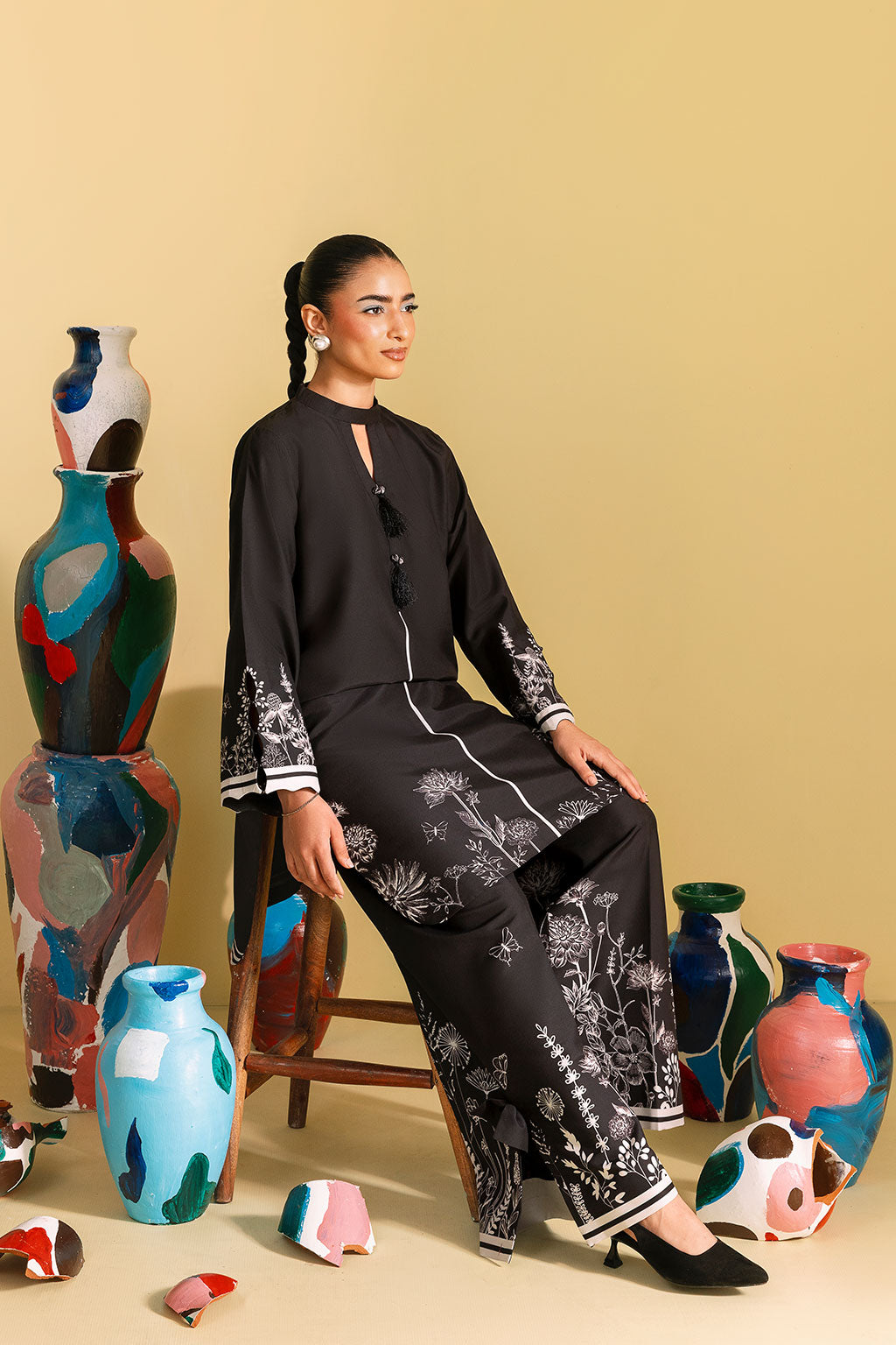 A black Co-ord set adorned with monochrome floral prints, blending elegance with ease.