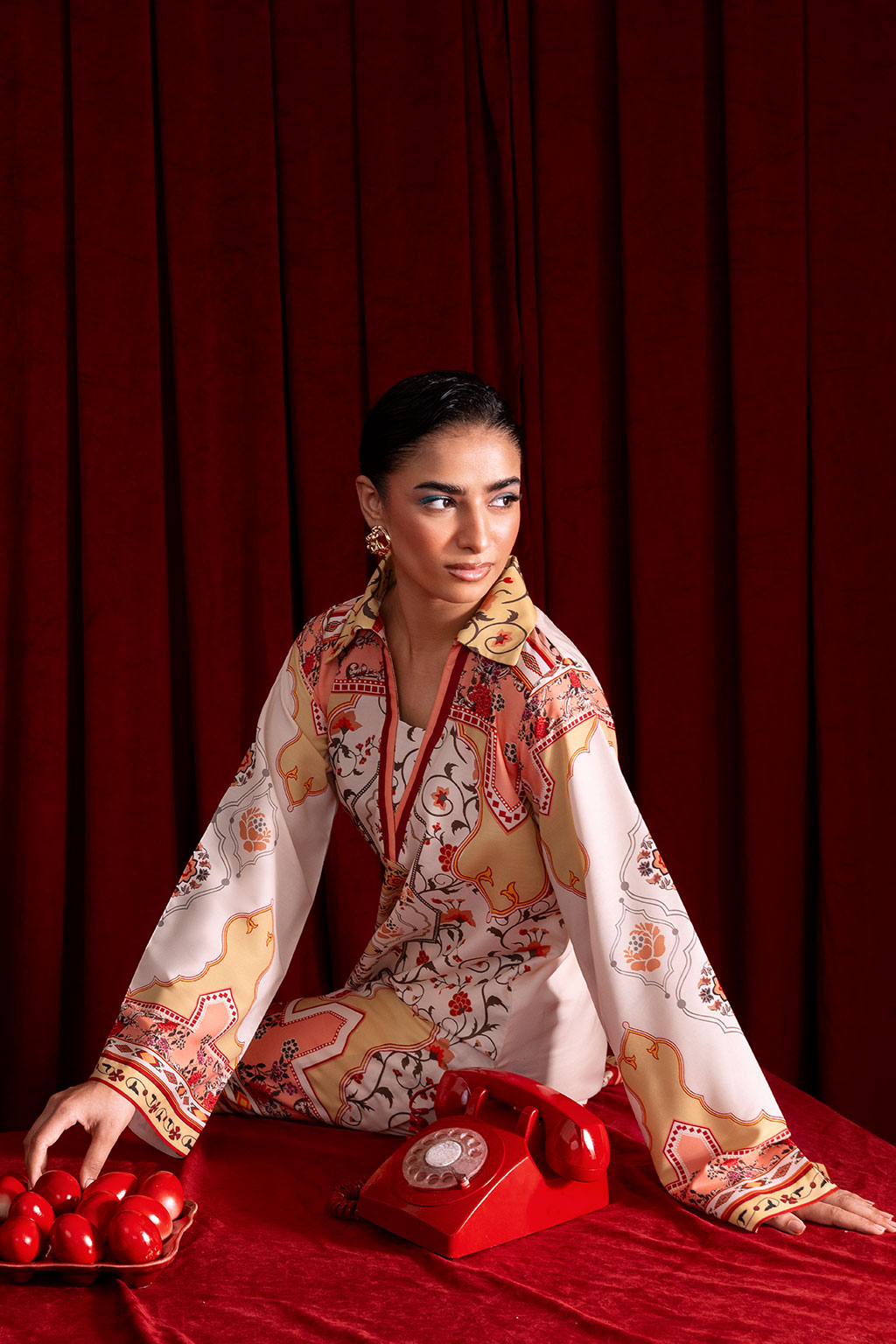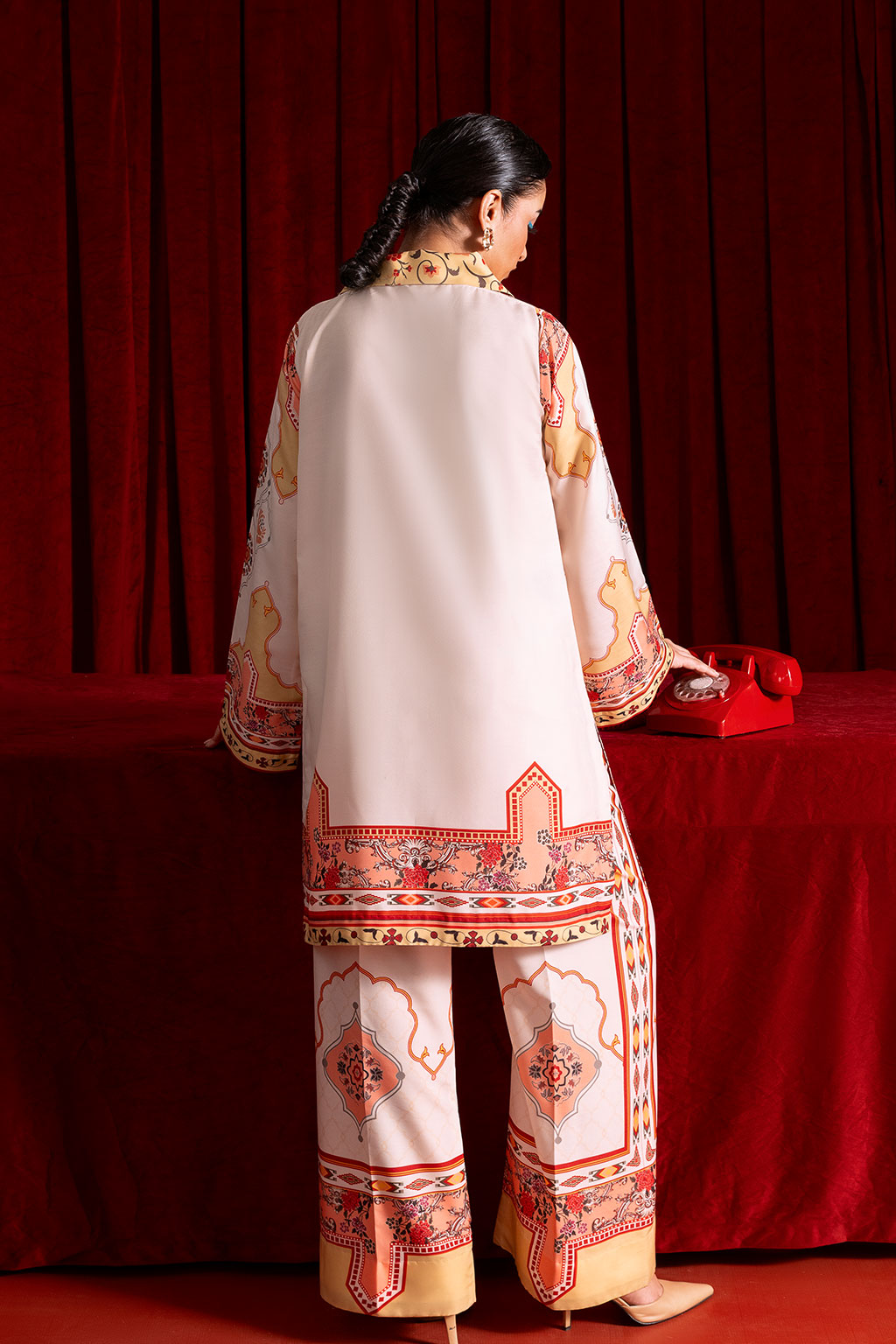 magenta ornate wide-leg trousers, for a breezy silhouette.