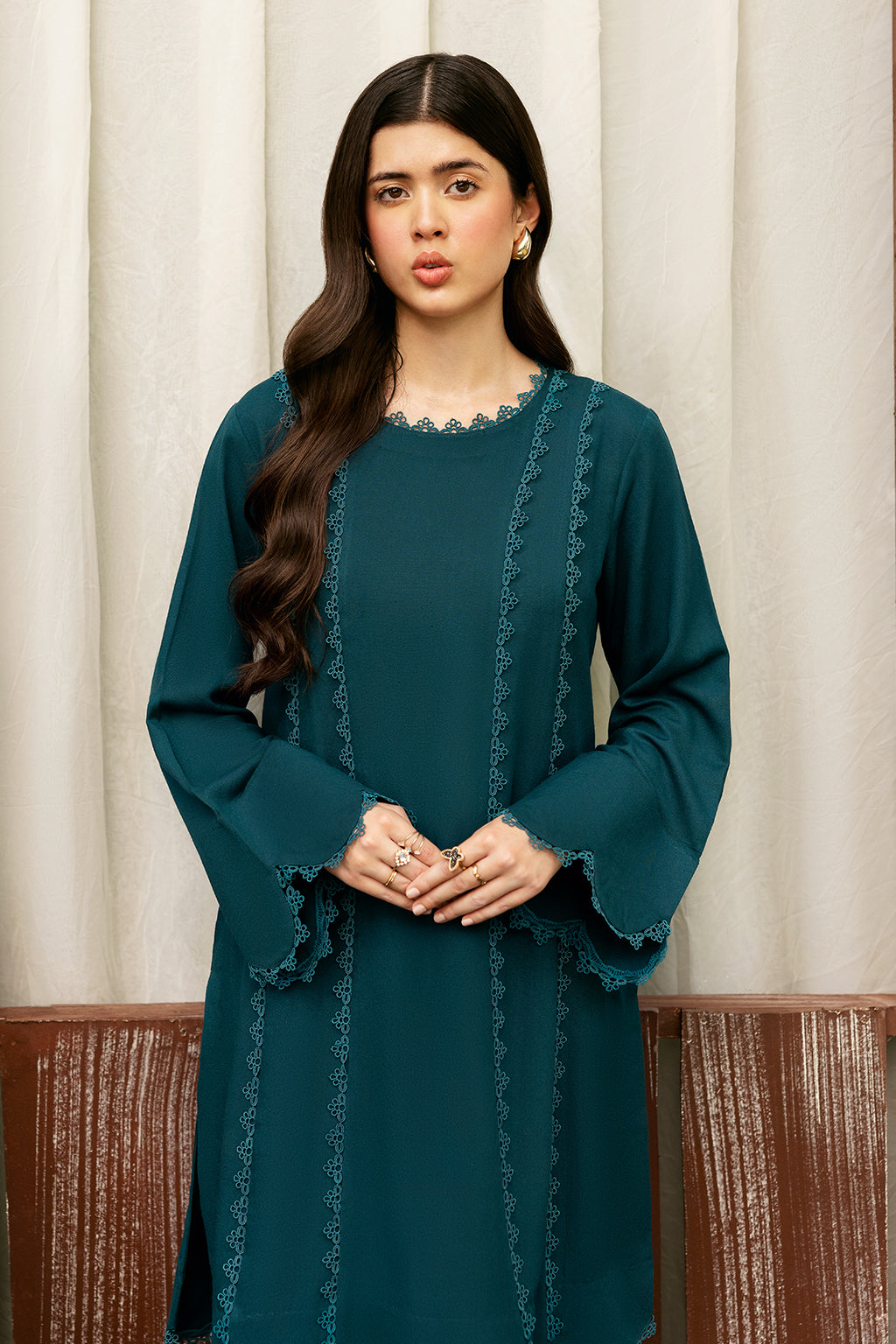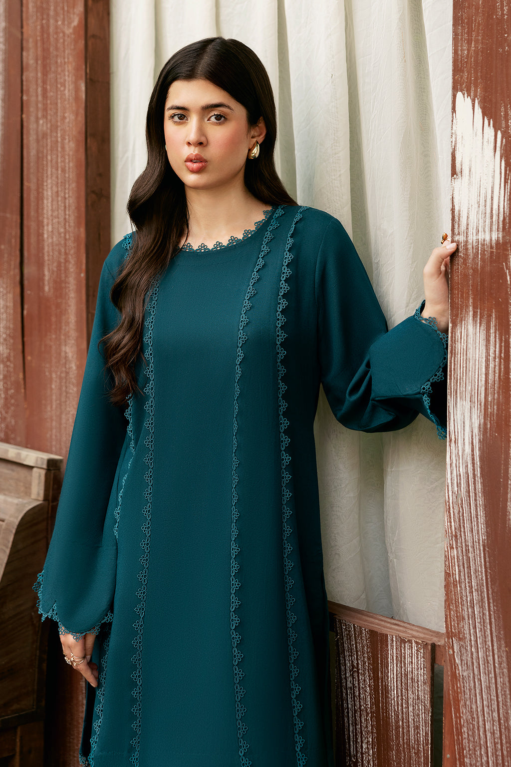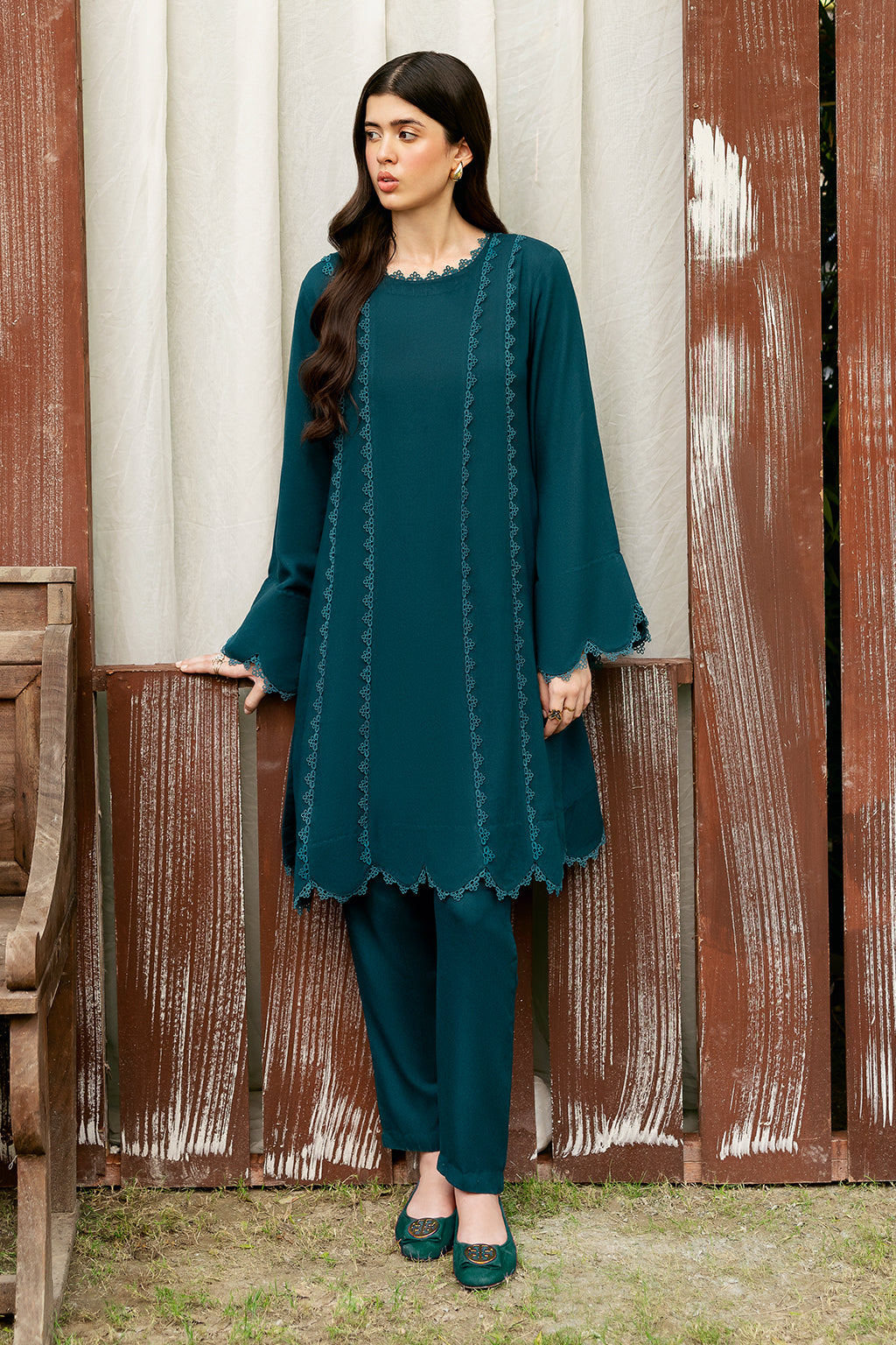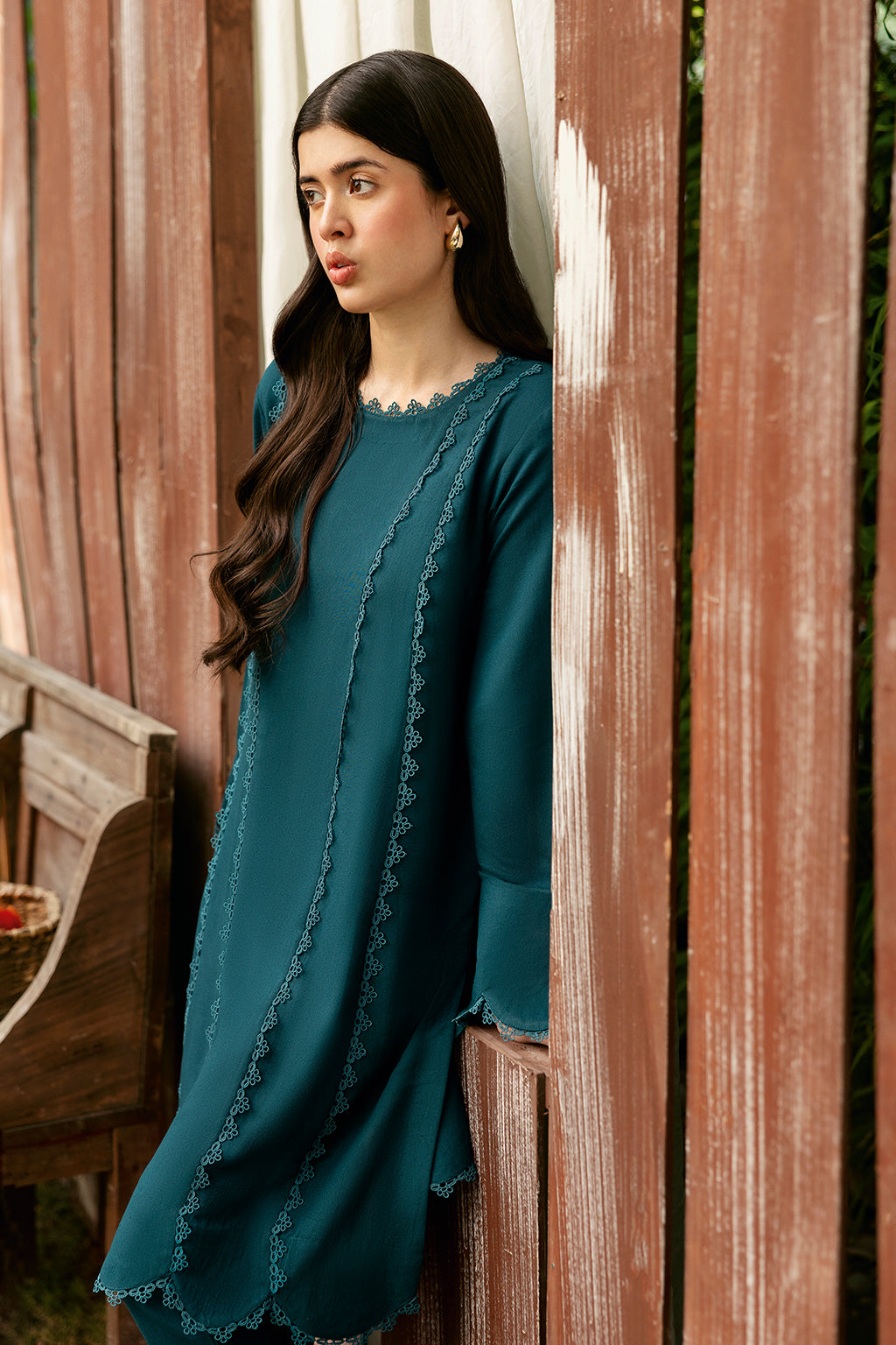 Zinc Set Includes an solid shirt pants with the round neckline embossed with lace - Pure premium karandi with a subtle sheen produced in-house!