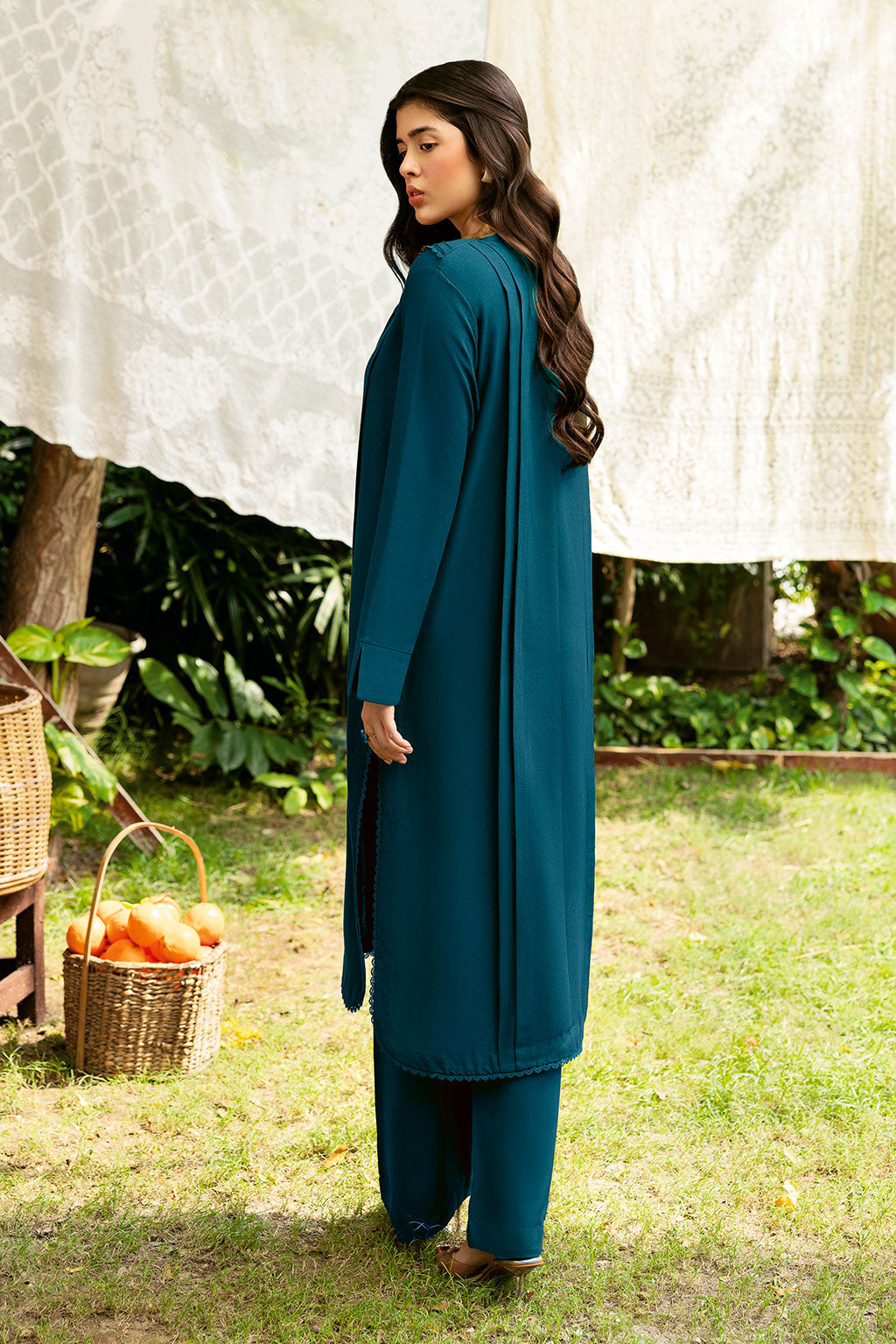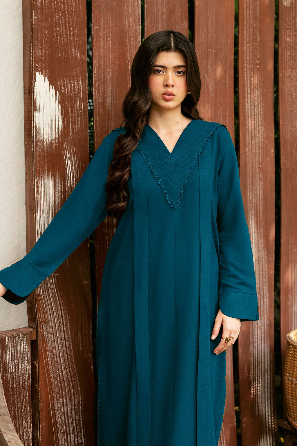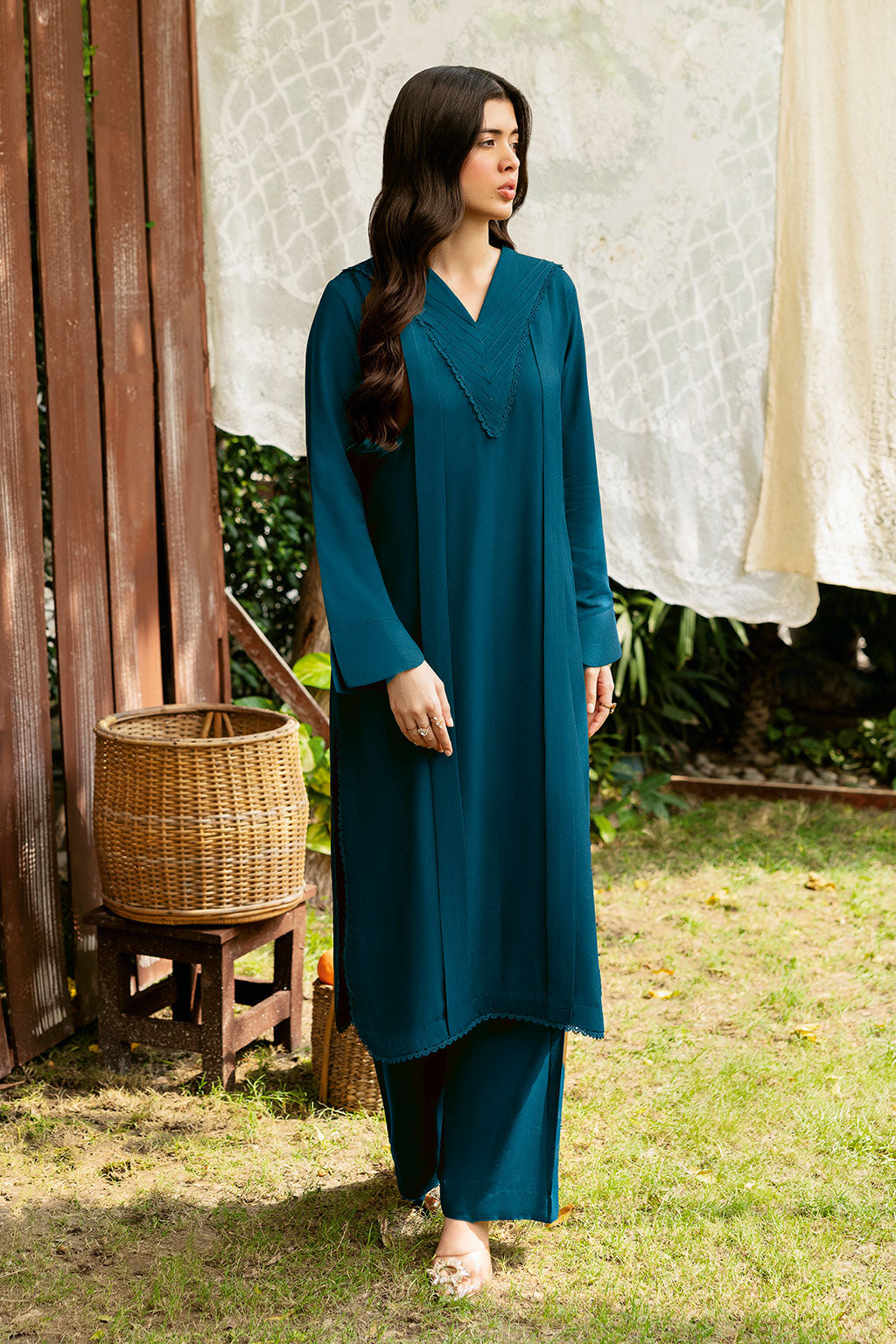 The Zinc set includes a solid shirt and pants with a V neckline - Pure premium karandi with a subtle sheen produced.