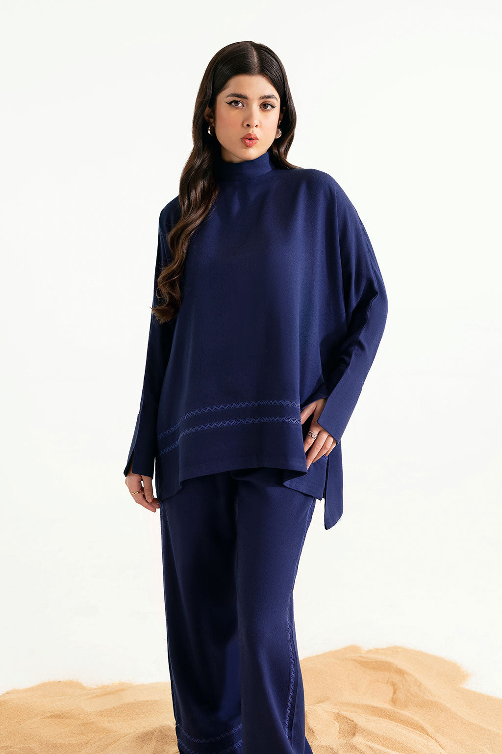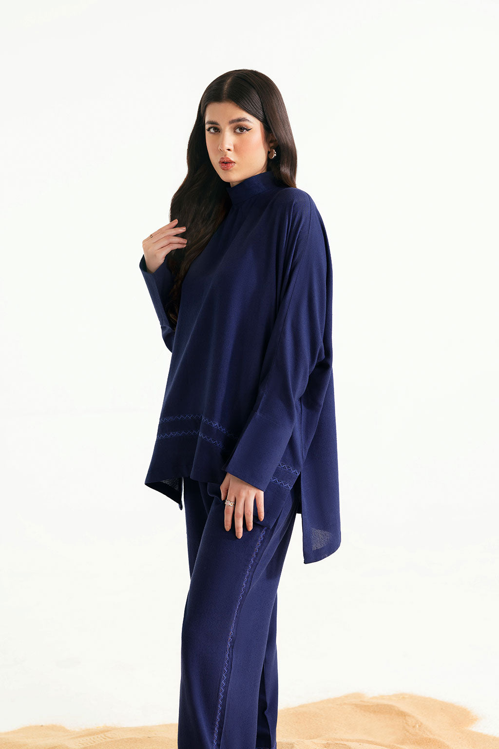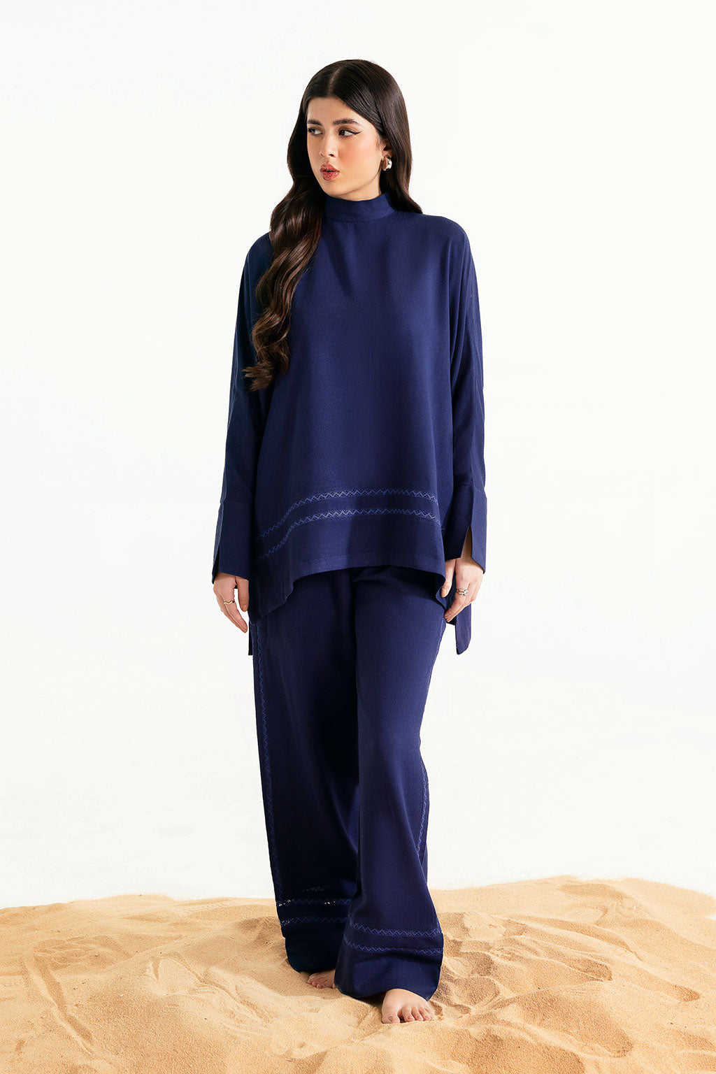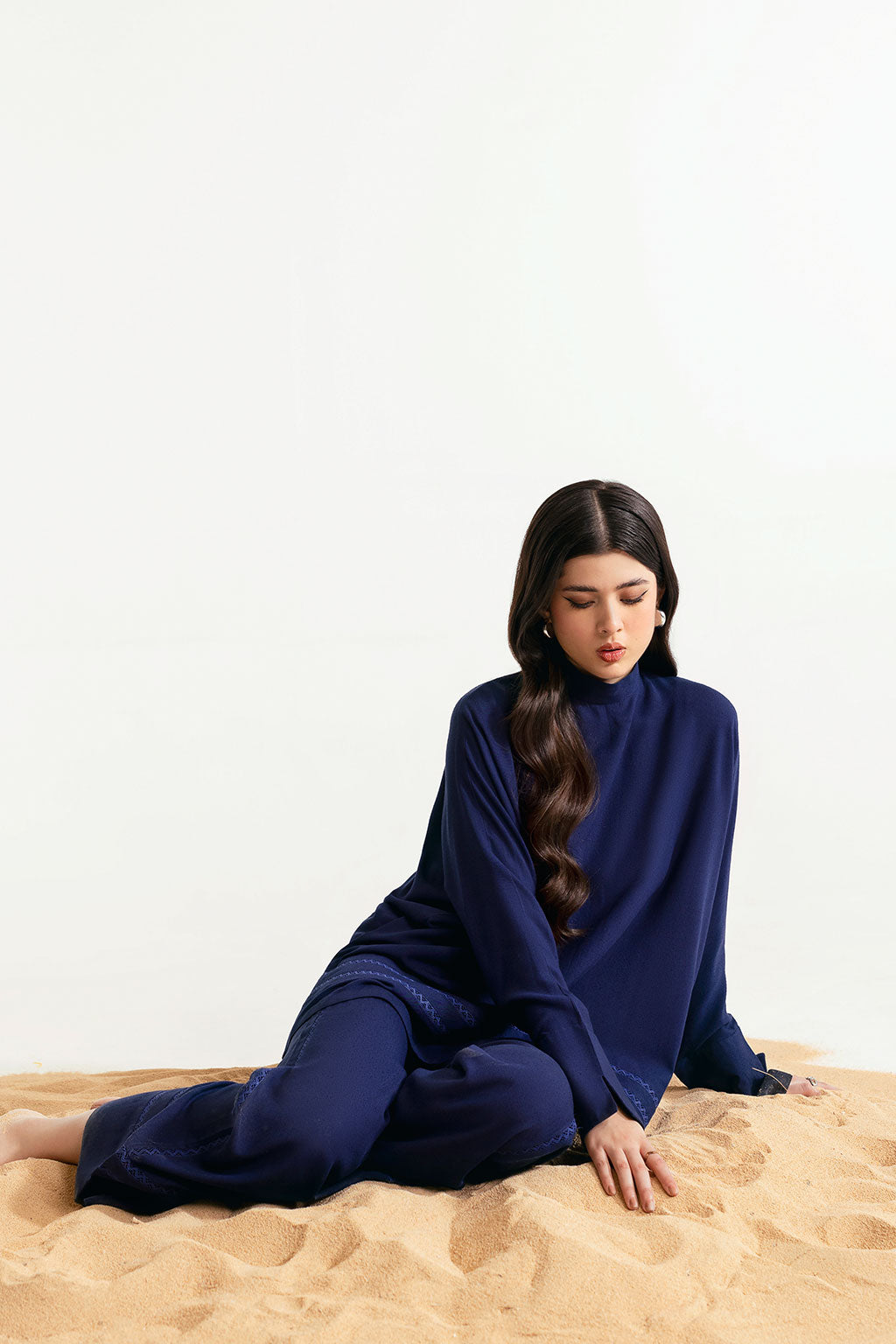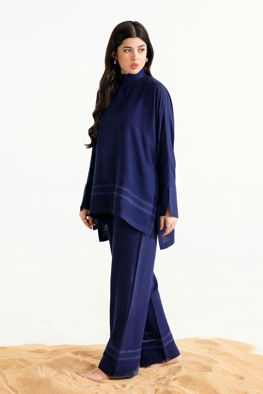 Designed in a sleek straight cut, this olive karandi outfit highlights minimalist sophistication with its round neckline and understated laces detailing.