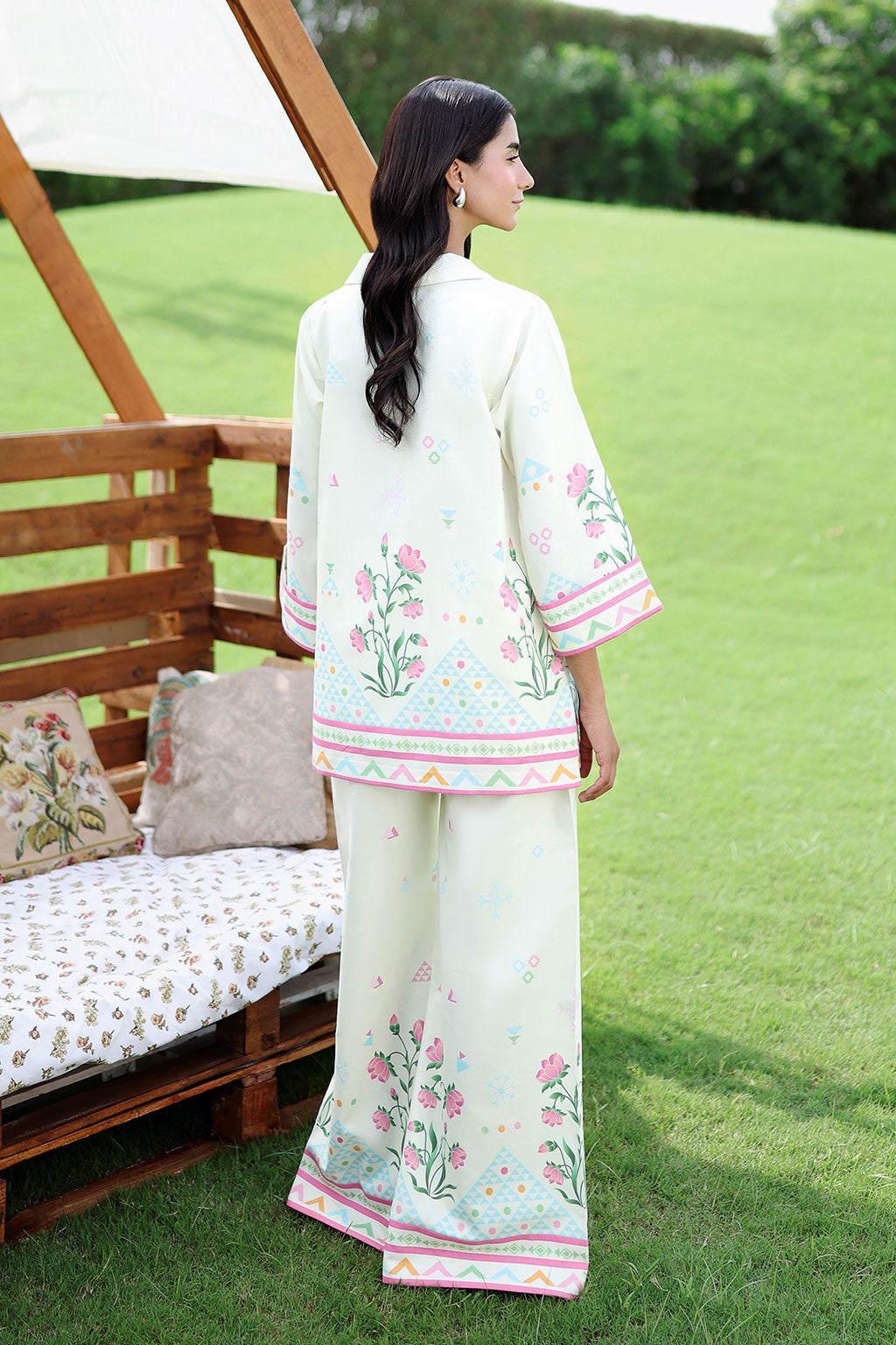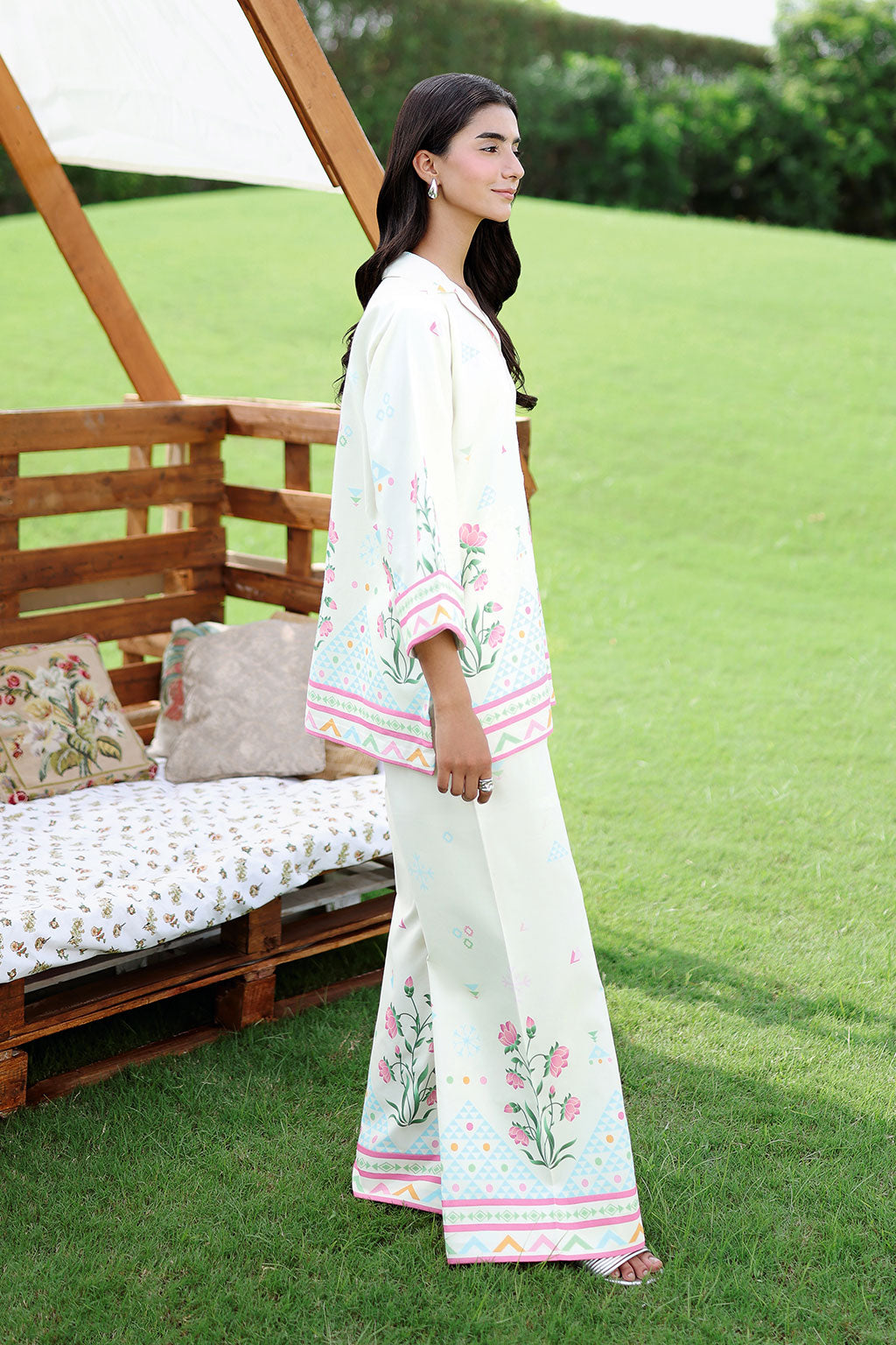 Ivory 2-piece printed lawn co-Ord set featuring a breathable fabric and vibrant, eye-catching prints for everyday elegance. Designed with a relaxed fit and coordinated trousers, it offers effortless comfort with a modern, polished look.