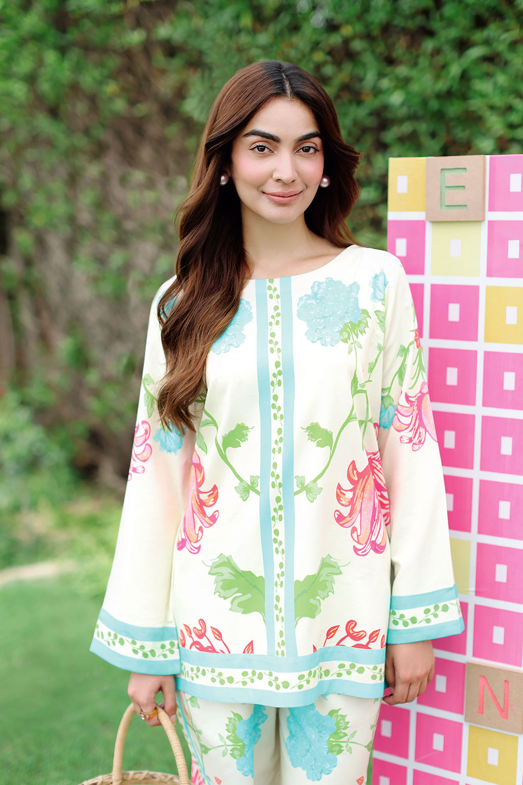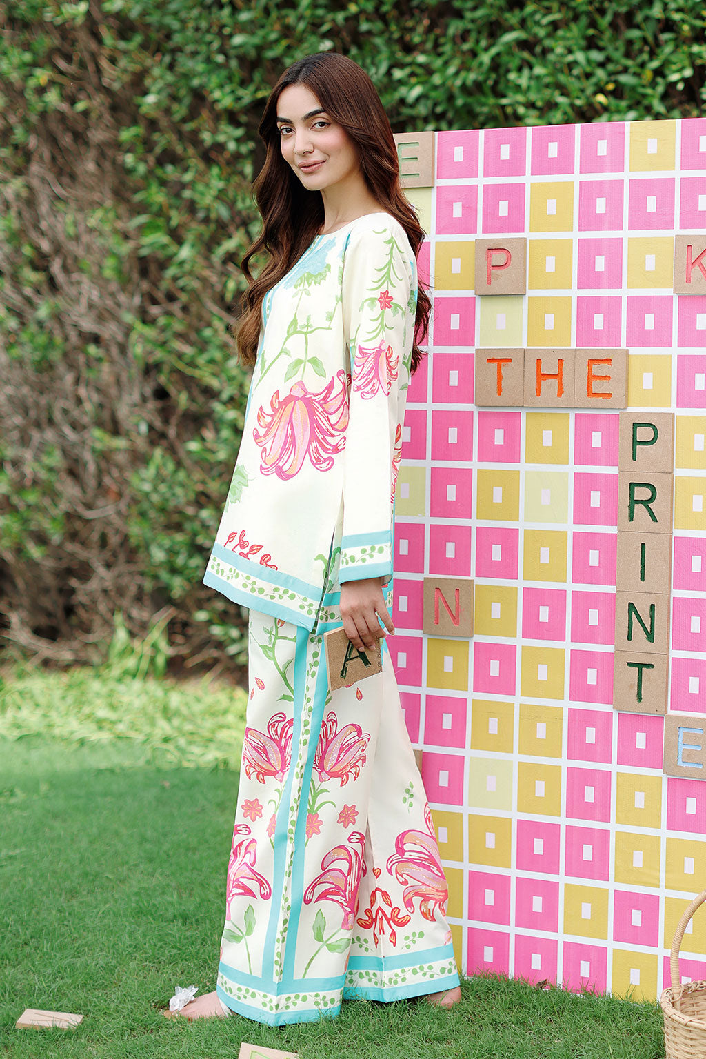Ivory 2-piece printed lawn co-Ord set featuring a breathable fabric and vibrant, eye-catching prints for everyday elegance. Designed with a relaxed fit and coordinated trousers, it offers effortless comfort with a modern, polished look.