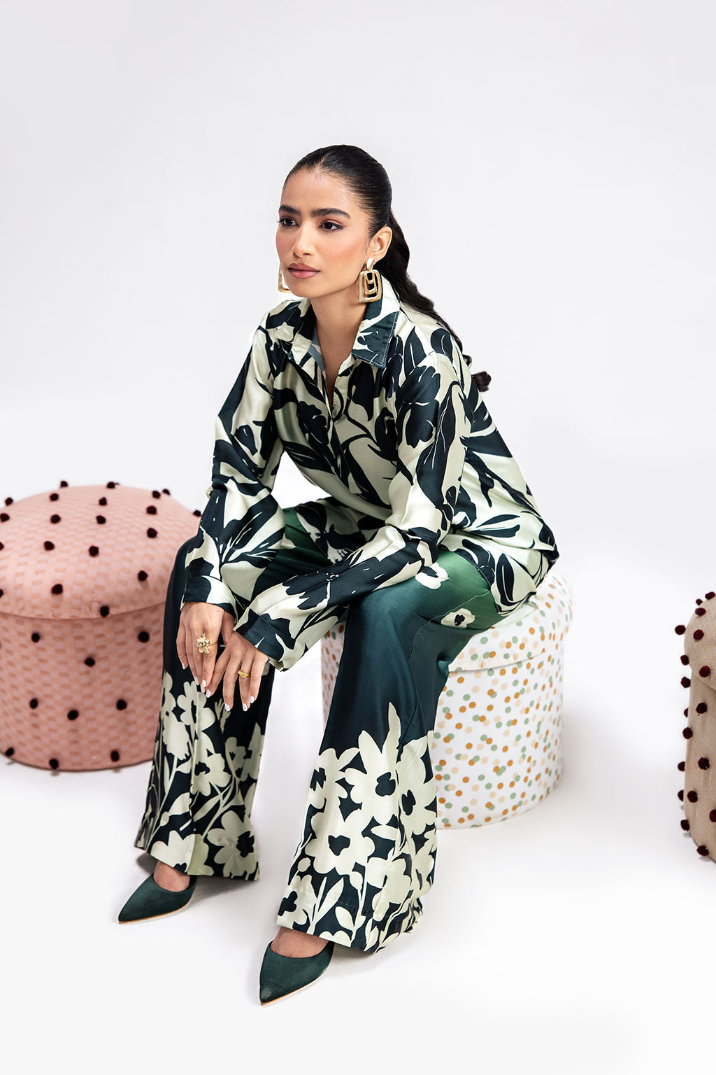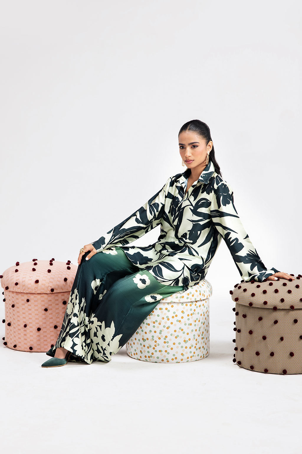 Digital printed set Includes a shirt and straight pants Crease Silk fabric produced in-house Suitable for summers.