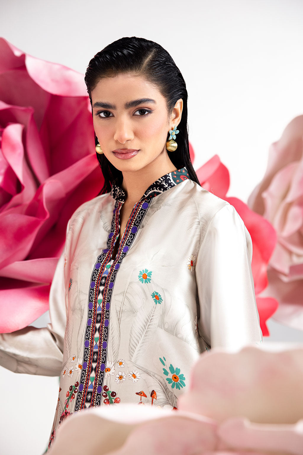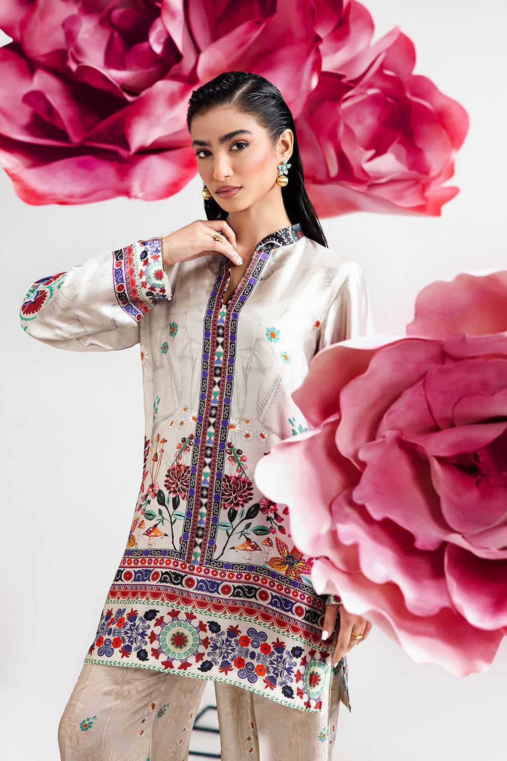Digital printed set Includes a shirt and straight pants Crease Silk fabric produced in-house Suitable for summers.